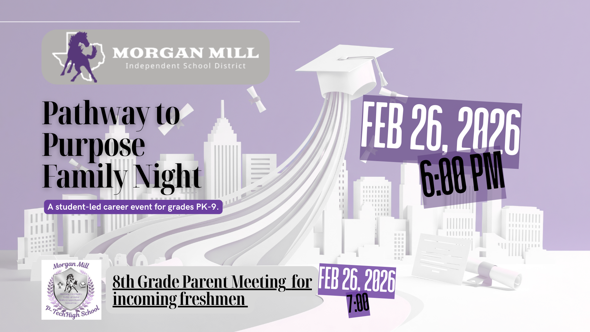 Morgan Mill Career Day - February 11, 2026 / Pathway to Purpose Family Night - February 26, 2026